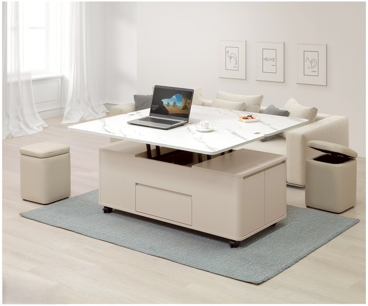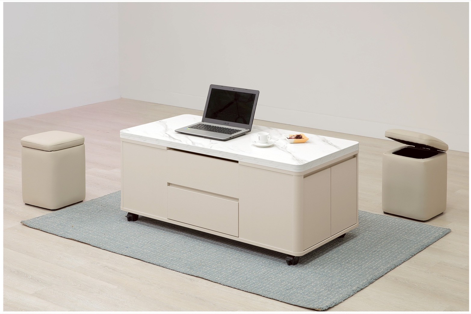 奶油風升降大茶几(不含椅)